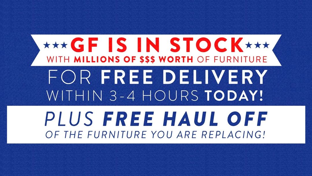 Furniture was delivered by 4:30 that day and installed by the delivery crew.