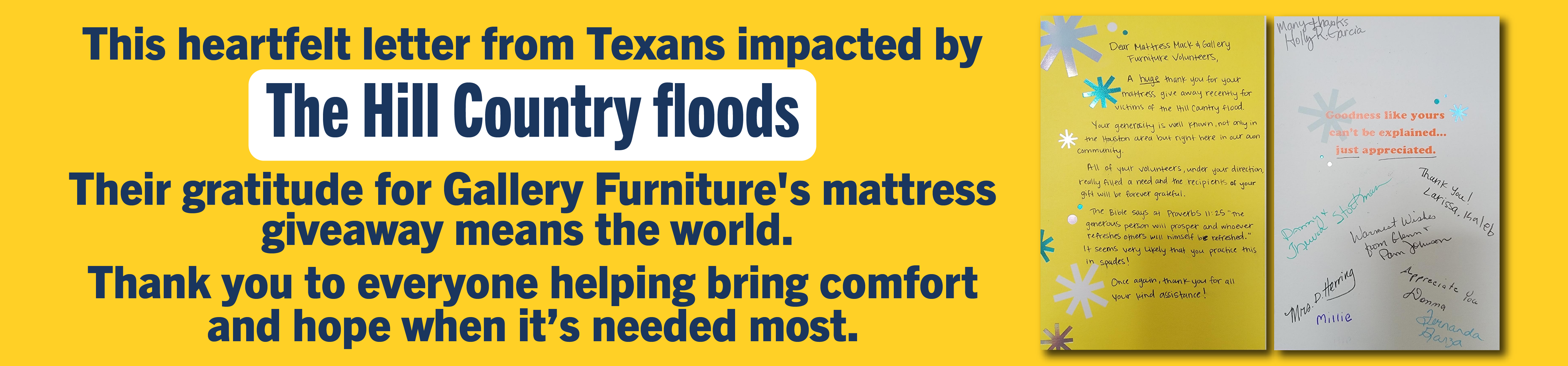 To all the Houstonians who’ve already stepped up, thank you! Your generous donations of supplies have been delivered straight to the Hill Country by the hardworking Gallery Furniture team.