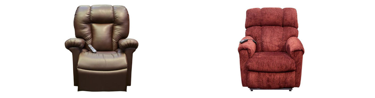Lift chairs are available in many different sizes, shapes, colors, and materials! It’s important to select the right size and upholstery to suit your comfort needs. Pay close attention to the measurements given for seat width and depth. Both can make all the difference! Some options you might have for your Perfect Lift Chair are: