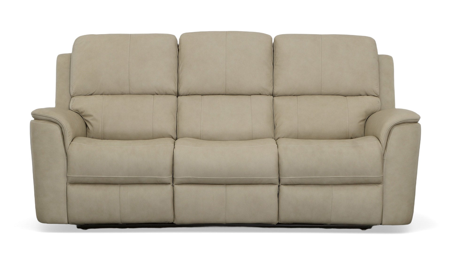 Indulge in luxurious comfort with the Big Spring Beige Leather Power Reclining Sofa, exclusively at Gallery Furniture. This sofa combines a generously scaled frame, contoured seats, and sculptural padded arms with refined welt trim for an elegant and comfortable seating experience. Upholstered in top-grain leather match, this sofa provides the look and feel of leather while using durable matching materials on the sides and back. Flexsteel’s patented Blue Steel Spring technology ensures long-lasting support and comfort.