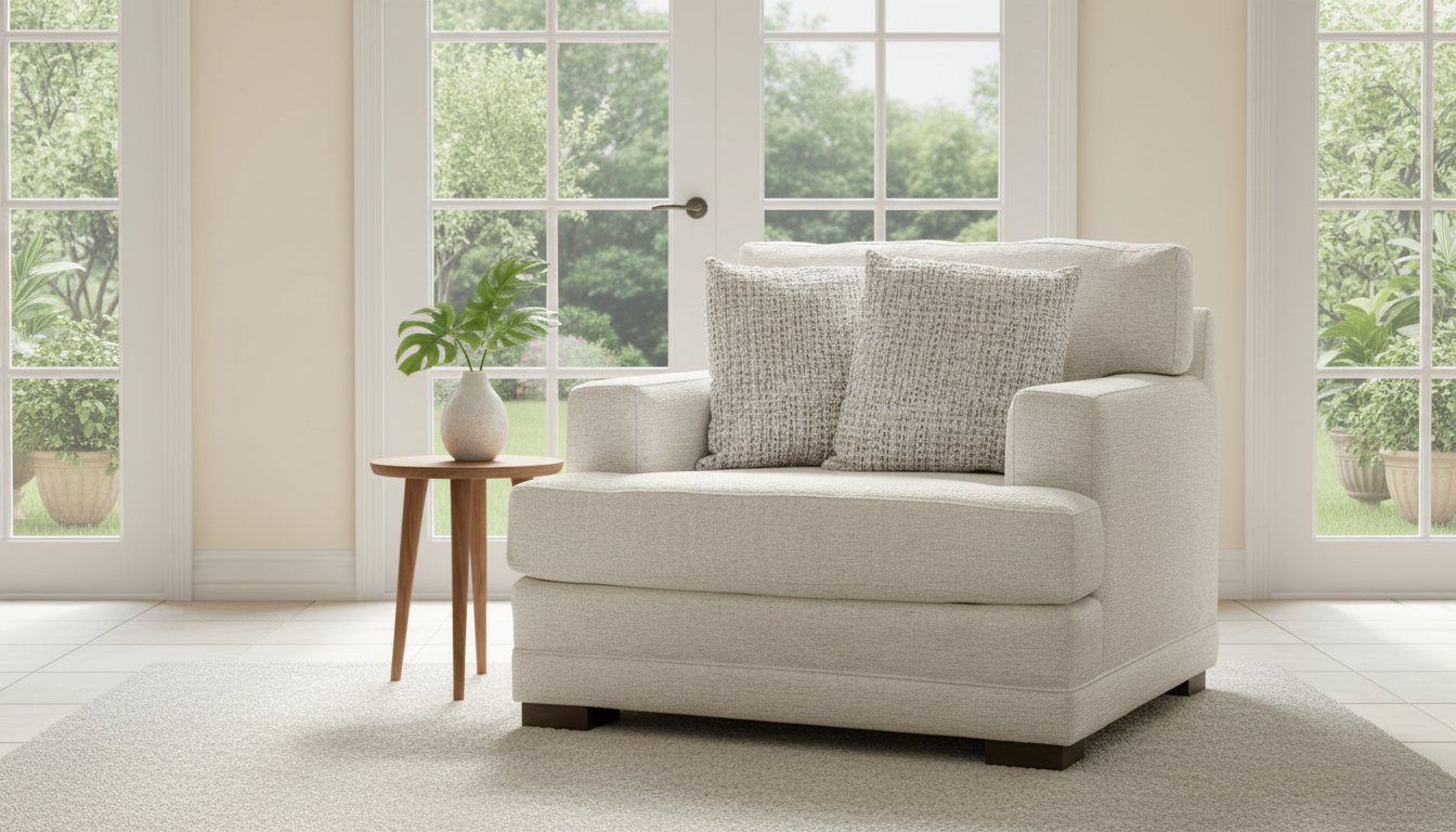 Upholstered in durable, stain-resistant MackTon™ powered by Crypton® performance fabric