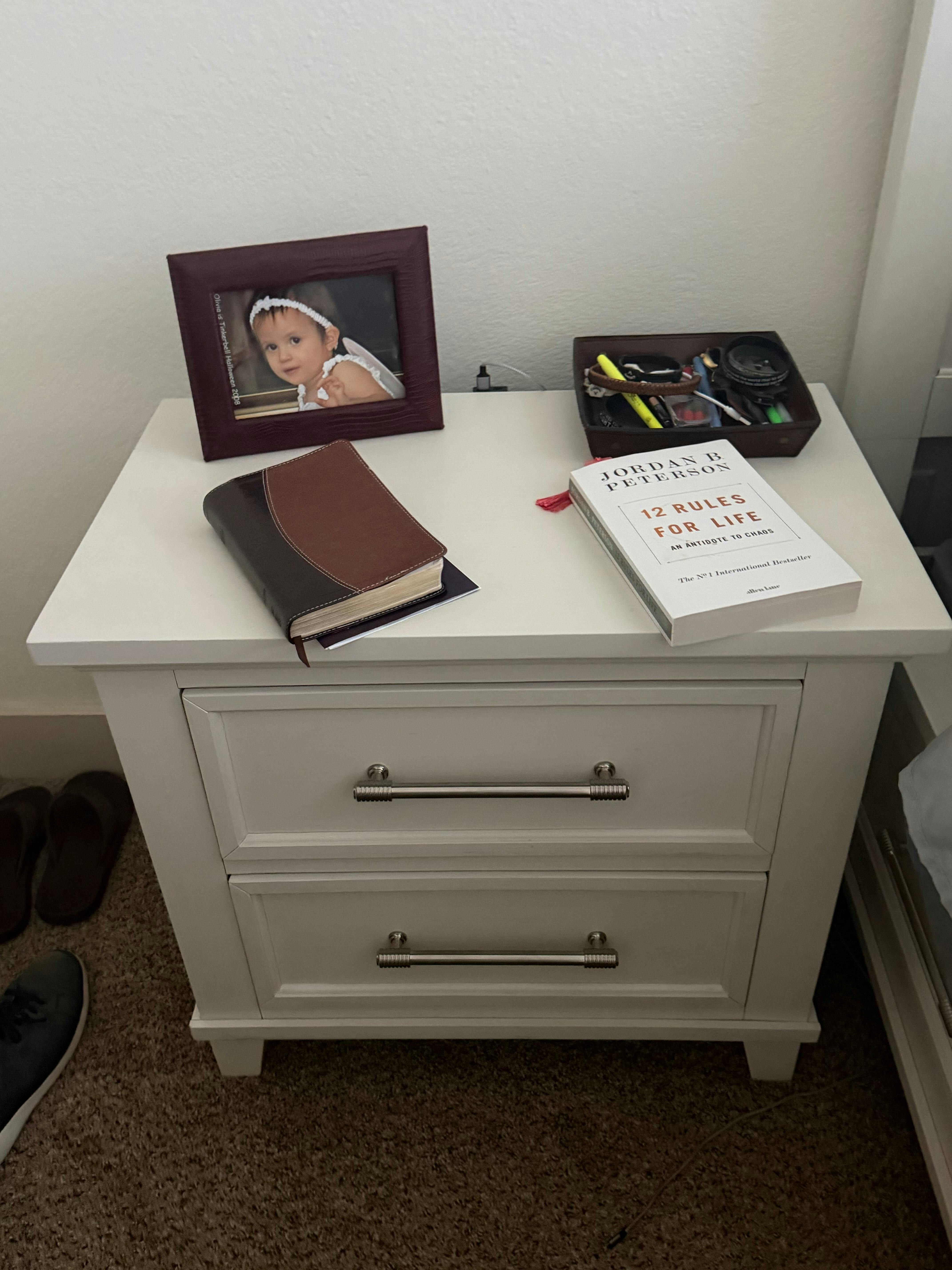 - Two spacious drawers provide convenient bedside storage