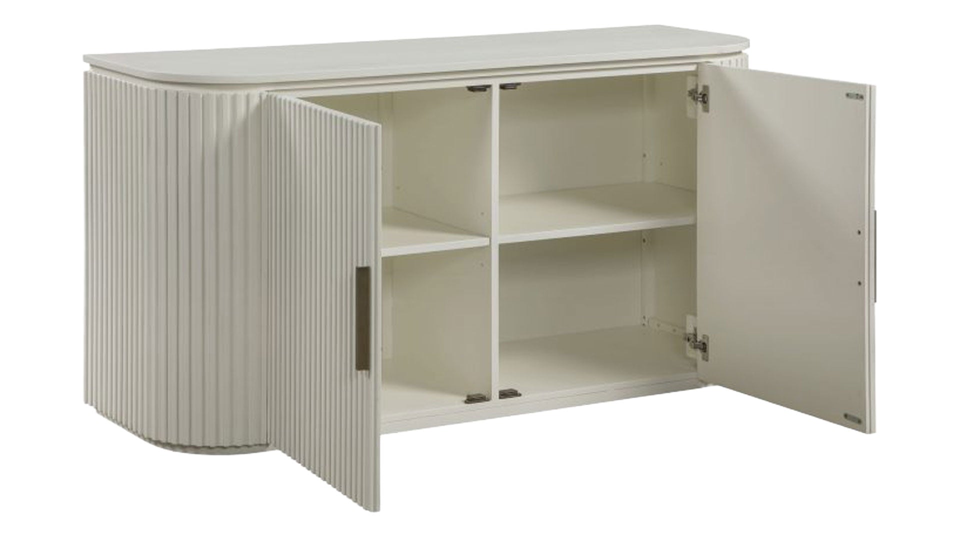 - Reeded front doors with concealed European hinges for a seamless look