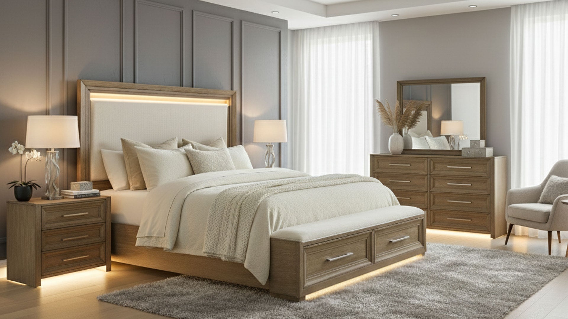 - LED Accent Lighting: Found at the headboard and footboard.