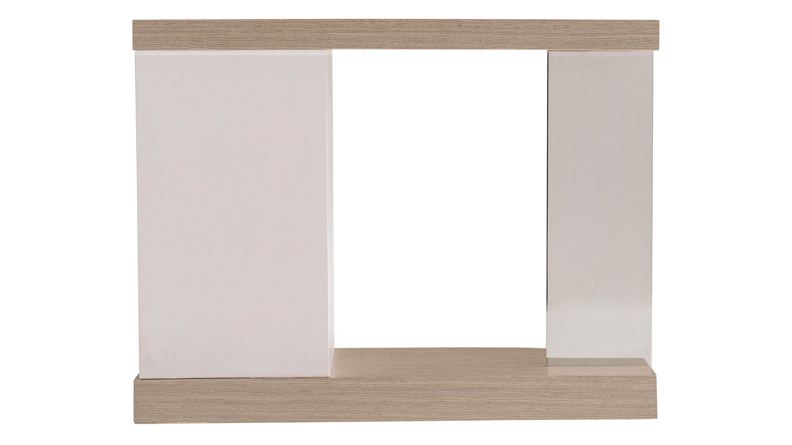The Bernhardt Modulum End Table is a stunning addition to any contemporary living space. With its elegant combination of white finishes and natural wood tones, this end table perfectly complements the Modulum Cocktail Table. Crafted with precision, it features a polished stainless steel support panel and a unique Adobe faux stone finish.