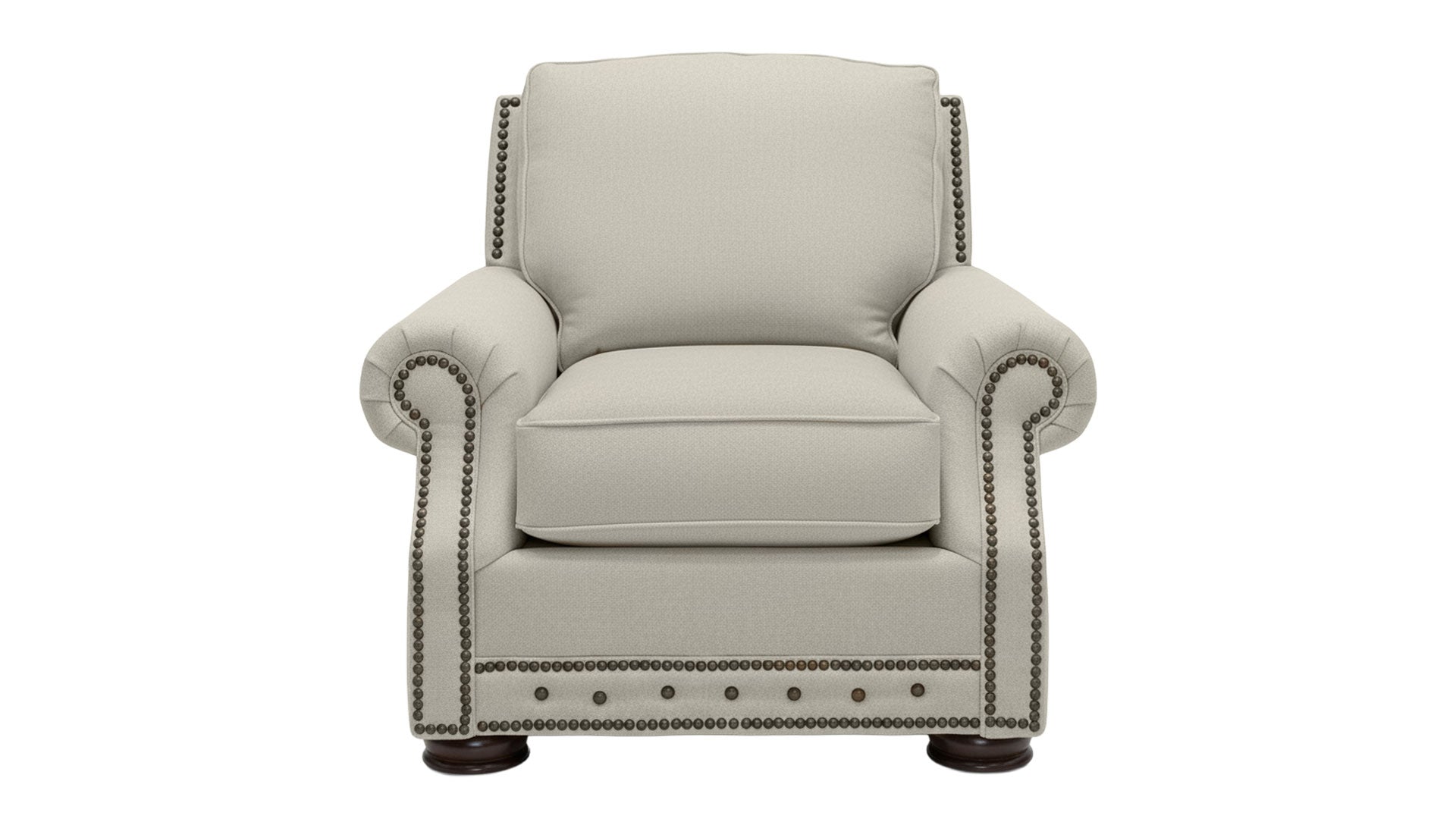 - Rolled arms with nailhead trim for timeless style