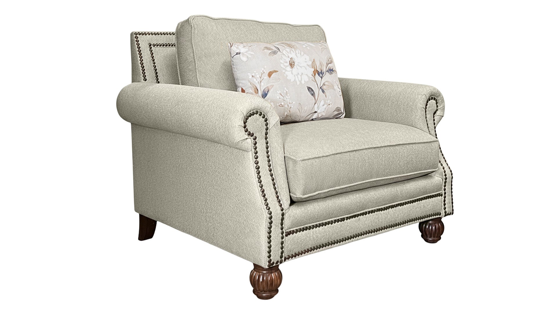 - Rolled arms, nailhead trim, and turned wood legs deliver timeless character