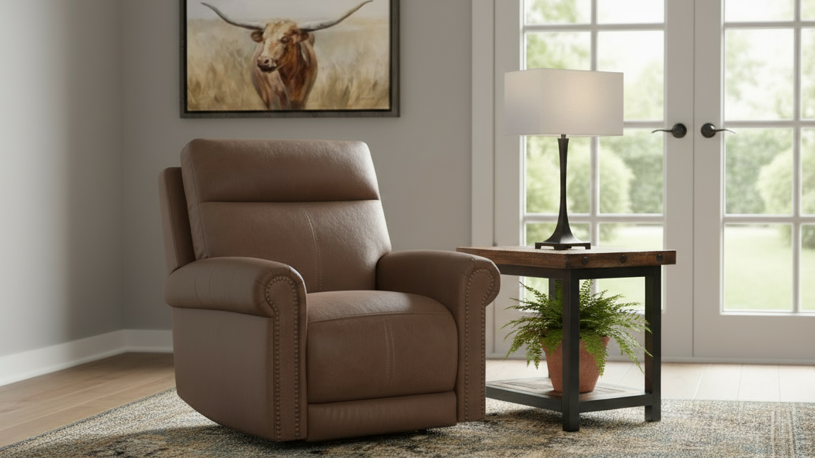 The Tawney P3 Power Recliner blends timeless craftsmanship with advanced motion comfort. Upholstered in top-grain semi-aniline Tawney Brown leather, it showcases rich tonal depth and natural grain texture for a look that’s as elegant as it is durable—engineered to perform beautifully for years of daily use.