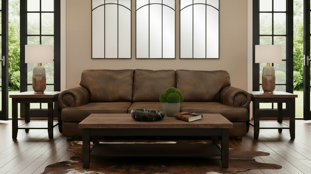Bring home unmatched Texas craftsmanship and bold sophistication with the Titan 100% Leather Sofa, available exclusively at Gallery Furniture. Designed for those who appreciate true comfort and lasting quality, this commanding 115-inch sofa delivers a look and feel worthy of its name. The rich, dark brown top-grain leather creates an atmosphere of strength and refinement, while classic rolled arms, hand-applied nailhead trim, and deep, supportive seating invite you to relax in luxury every day. Whether anchoring a grand family room or adding stately charm to your home, the Titan Sofa makes an unmistakable statement of style, comfort, and Texas pride.
