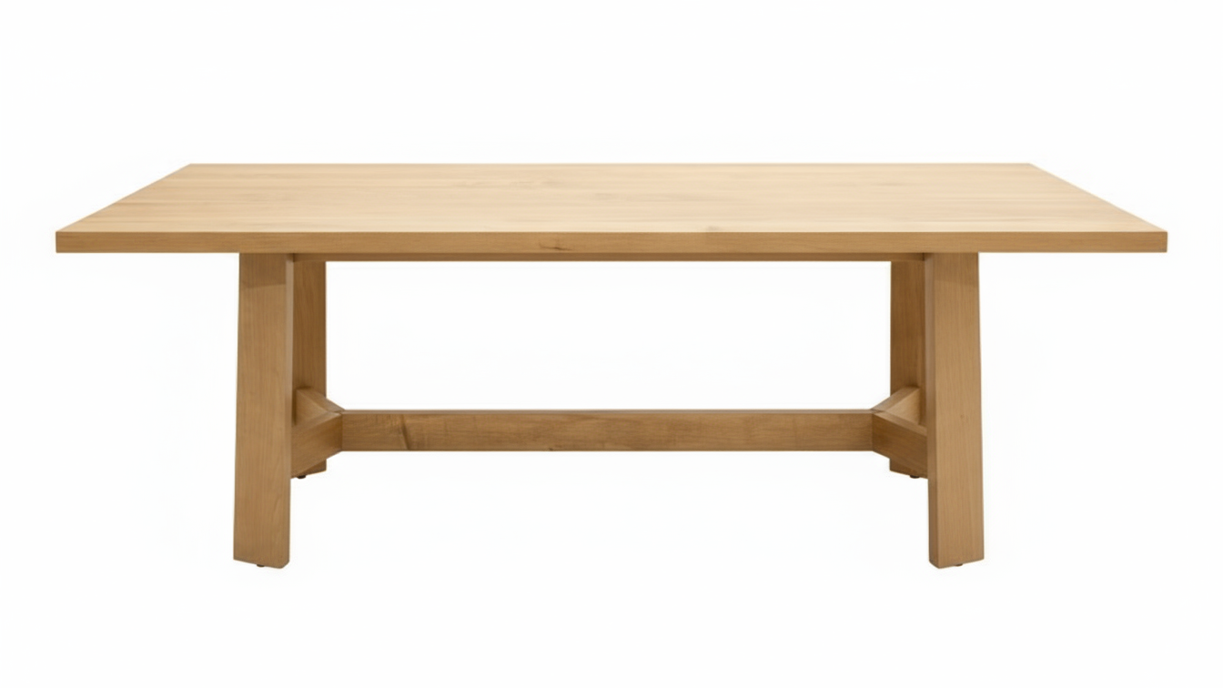 This Amish-made dining table is handcrafted in the USA from 100% solid hardwood, offering clean modern lines with timeless craftsmanship. Built for everyday family meals and special gatherings alike, the sturdy trestle base adds stability while the smooth, natural finish highlights the beauty of real wood. No veneers. No imports. Just solid, dependable American-made quality.