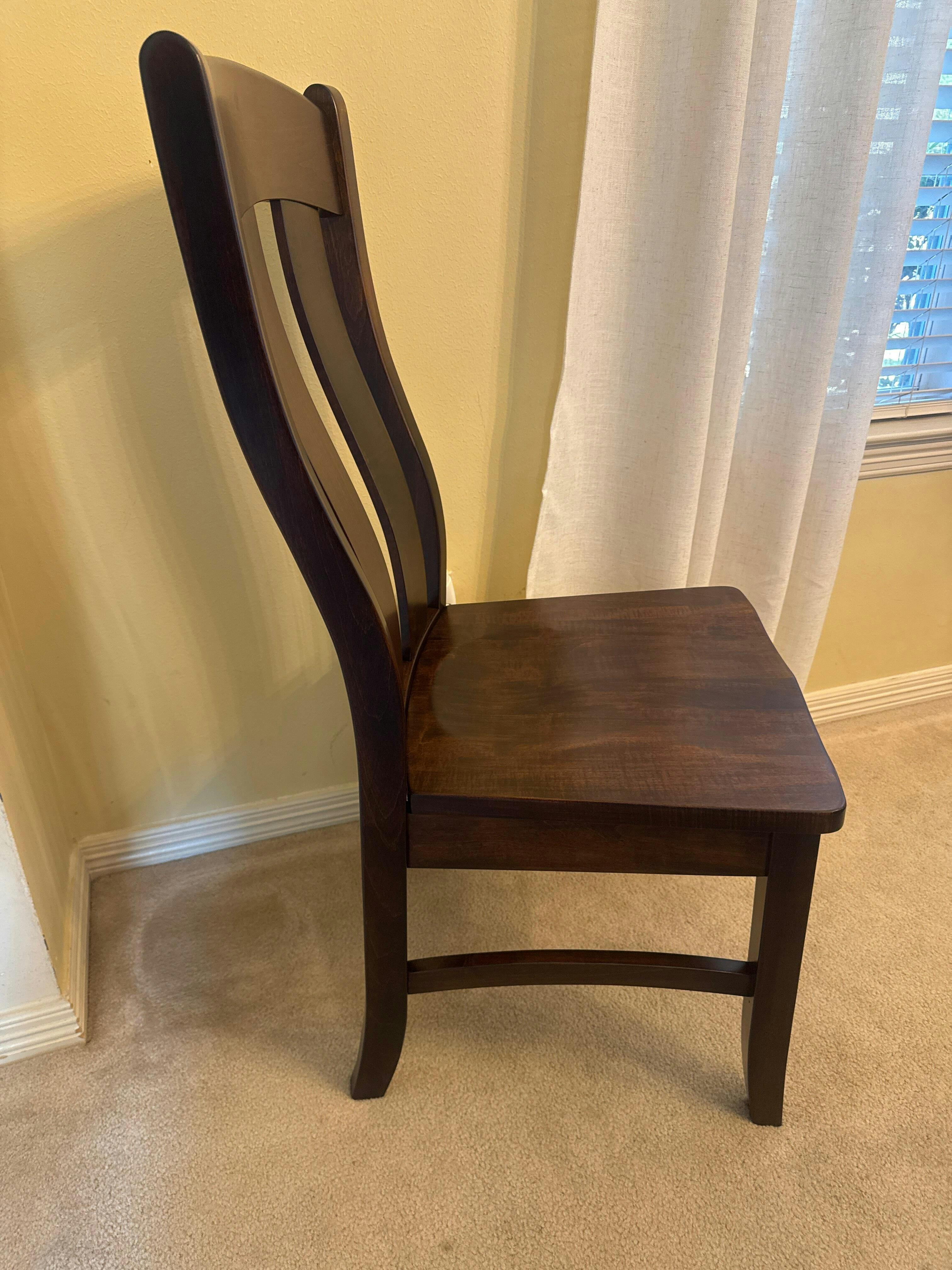 Finished in a warm Asbury stain, the natural beauty of the wood grain shines through, adding a touch of rustic elegance to any décor. Ideal for traditional and modern dining spaces alike, this American-made dining chair combines classic style with superior craftsmanship. Add timeless charm and unmatched quality to your home with this solid wood Amish dining chair—a true investment in comfort and design.