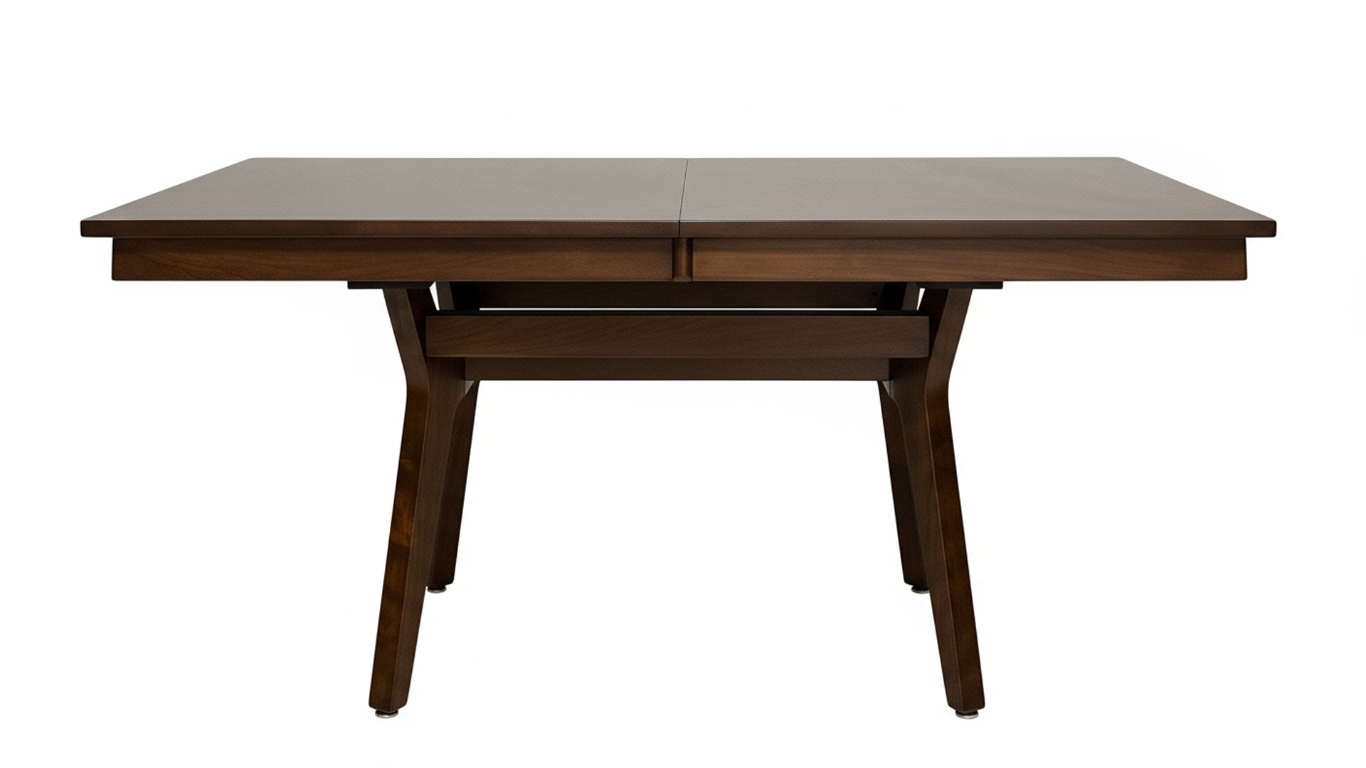 This Amish-made dining table is handcrafted in the USA from 100% solid hardwood and features a clean, mid-century modern design with smooth lines and warm wood tone. Built for both everyday meals and special gatherings, the table includes a center leaf extension so you can easily expand your seating when you have guests. Heirloom quality you can enjoy for generations.